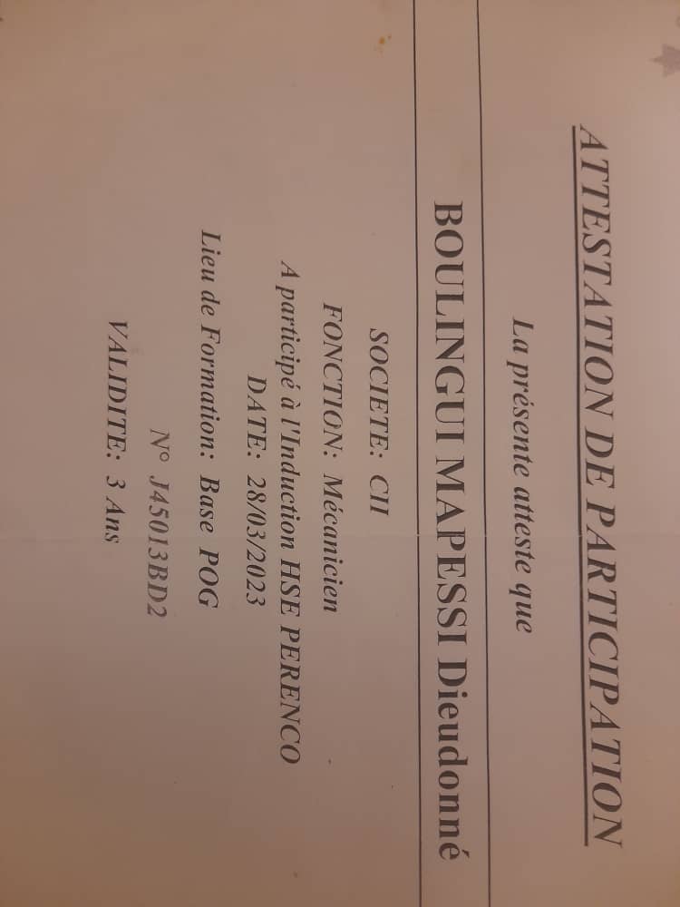 QHSE > Induction BOULINGUI MAPESSI DIEUDONNE 28/03/2026 00:00 Expiré · 17 j Visualiser