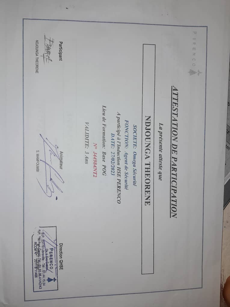 QHSE > Induction NDJOUNGA THEORENE 27/02/2026 00:00 Expiré · 47 j Visualiser