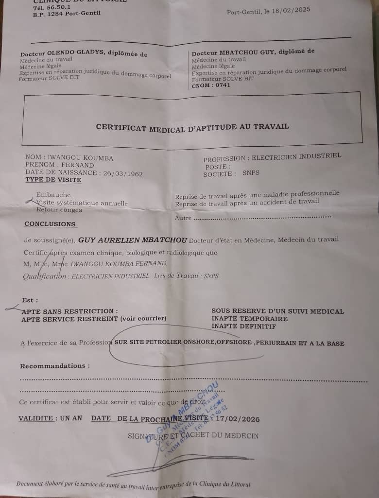 QHSE > Visite médicale IWANGOU KOUMBA FERNAND 17/02/2026 00:00 Expiré · 57 j Visualiser